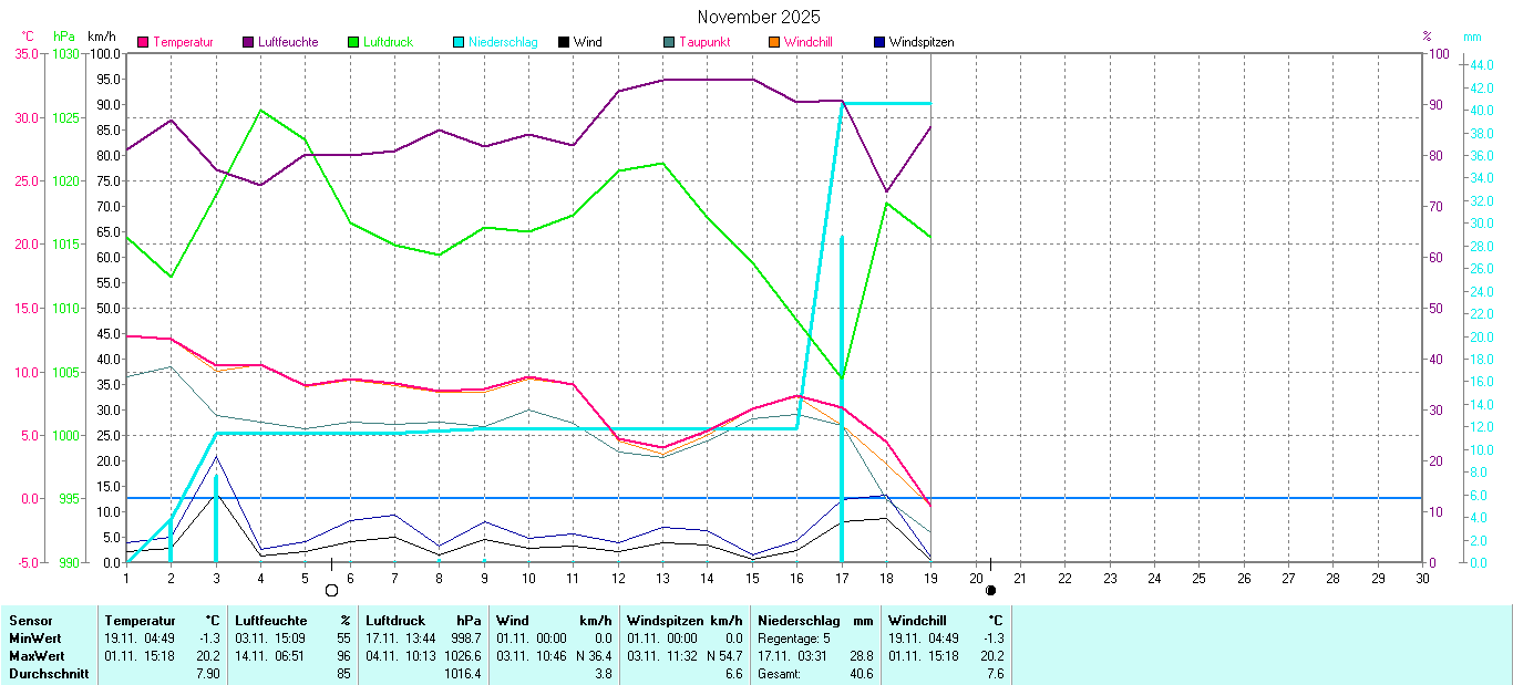 Wettergrafik November 2025 (Graphen entsprechen Ø-Werten) ![]() |